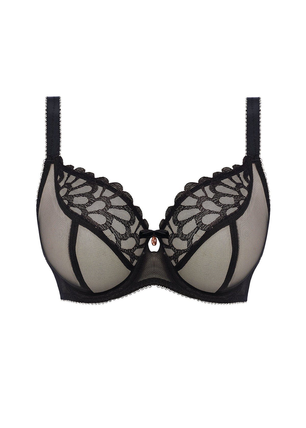 Freya Loveland in Bombshell Black Uw Plunge Bra | Luxury Art Deco Lingerie with Glossy Ciré Embroidery